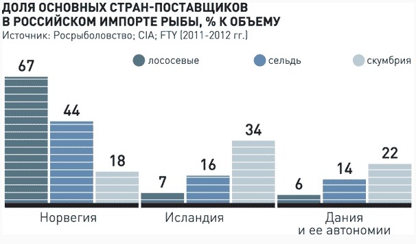 Между тем ФАС недавно начала расследование "О нарушении антимонопольного законодательства на рынке поставок норвежской и вьетнамской рыбопродукции". Дело в том, что, поскольку свыше 60% российского рыбоимпорта с 1990-х гг. приходится на Норвегию (в том числе до 70% — по ввозу семги), некоторые ее крупные фирмы-поставщики прямо или косвенно требуют чуть ли не собственного регулирования сбыта в РФ норвежской продукции. Впрочем, планы усилить монопольные позиции норвежской продукции в рыбном импорте РФ могут быть связаны и с планируемой зоной свободной торговли (ЗСТ) между Таможенным союзом и Европейской ассоциацией свободной торговли. А такой торговый режим, напомним, исключает не только ввозные-вывозные пошлины, но и квоты и т.п.